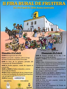 Santa Gertrudis acoge los días 25 y 26 de abril de 2026 la segunda edición de la Fira Rural de Fruitera, una cita que convierte el núcleo del pueblo en un escaparate de la cultura campesina, los productos locales y las tradiciones ibicencas.