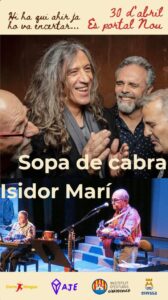 • 20:00 h: Concerts de luxe: Isidor Marí i Sopa de Cabra.