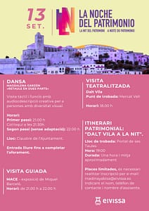 No dejes pasar la oportunidad de vivir una noche inolvidable, explorando el rico patrimonio de Ibiza y sumergiéndote en su vibrante oferta cultural. ¡Marca el 13 de septiembre en tu calendario y prepárate para disfrutar de la Noche del Patrimonio!