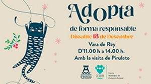 El sábado, 18 de diciembre tiene lugar en Ibiza la jornada ‘Adopta de forma responsable’. Un nuevo encuentro destinado a concienciar sobre la adopción responsable de animales domésticos, que tendrá lugar en el paseo de Vara de Rey, de 11.00 a 14.00 horas.